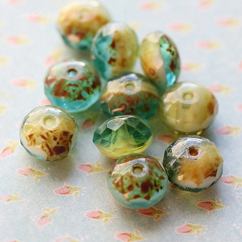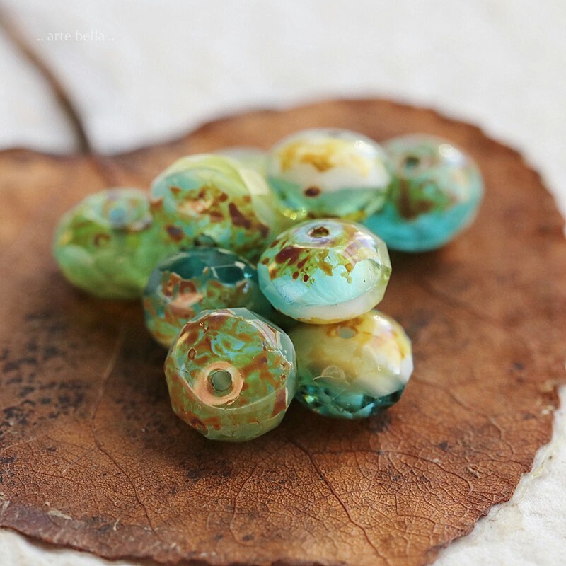 MALIBU BEACH .. 10 Premium Picasso Czech Glass Faceted Rondelle Beads 8x6mm (8663-10) .. jewelry supplies