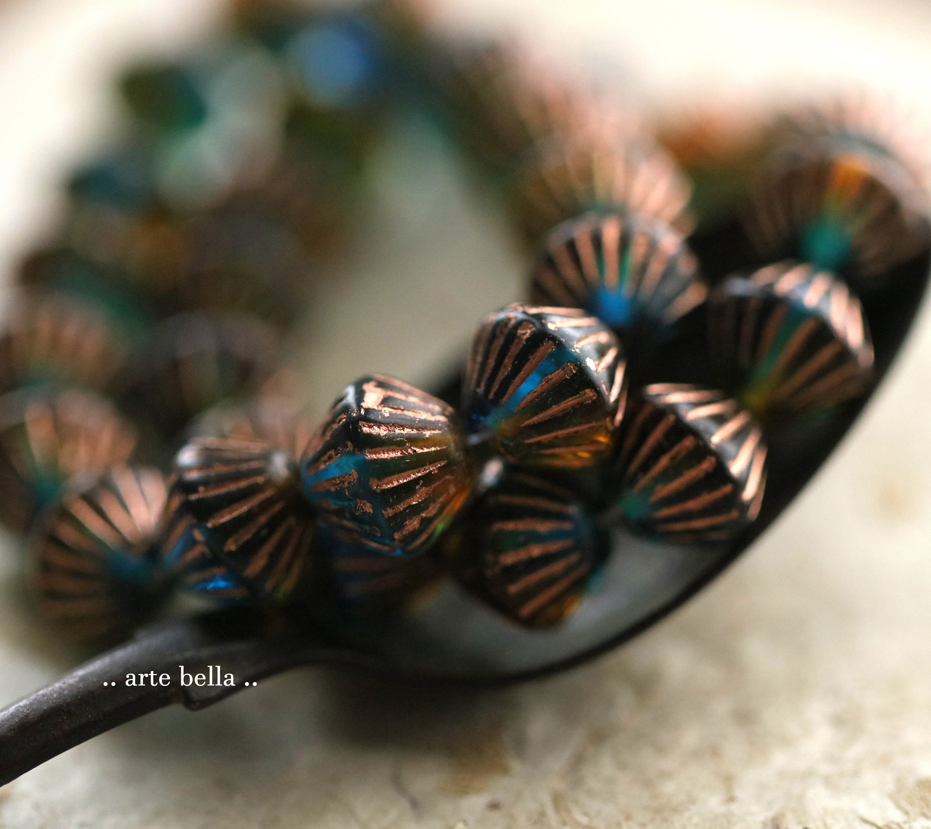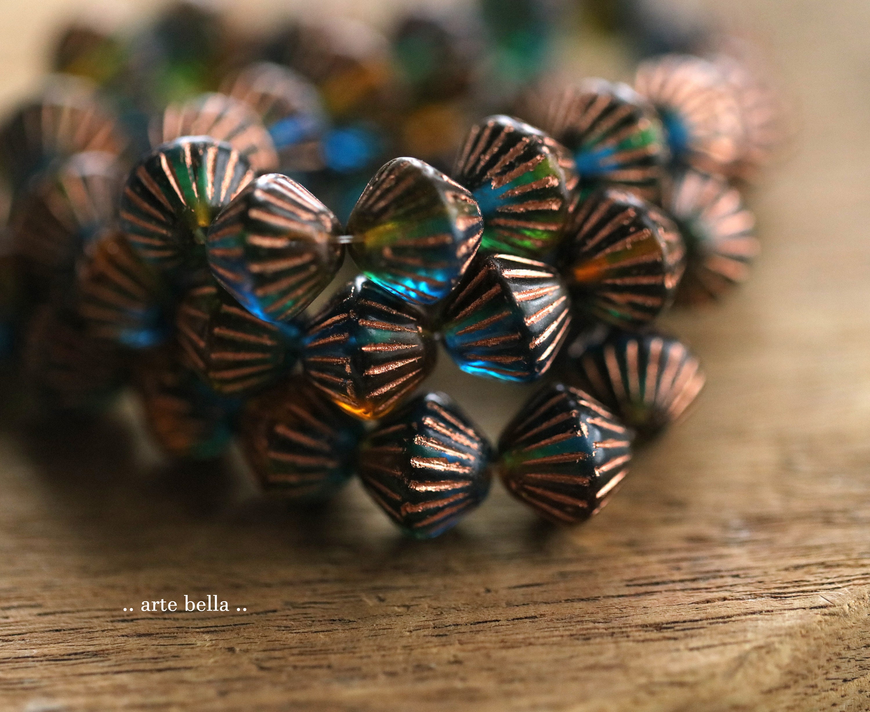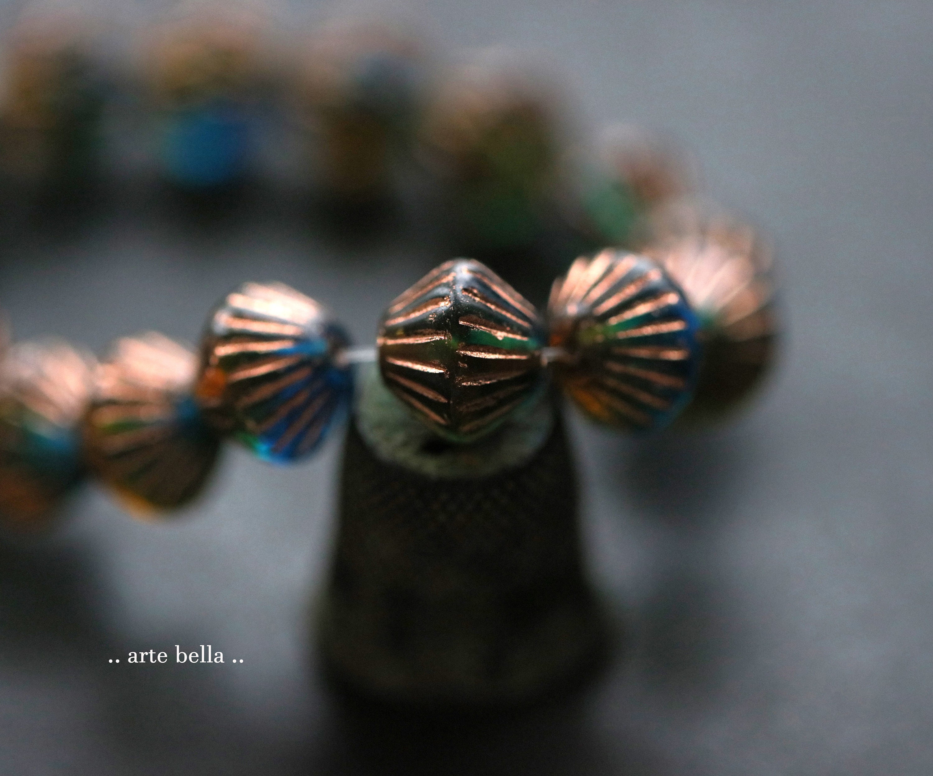 COPPERED CABO TUTUS .. 15 Premium Czech Glass Fluted Bicone Beads 11mm (8808-st) .. jewelry supplies