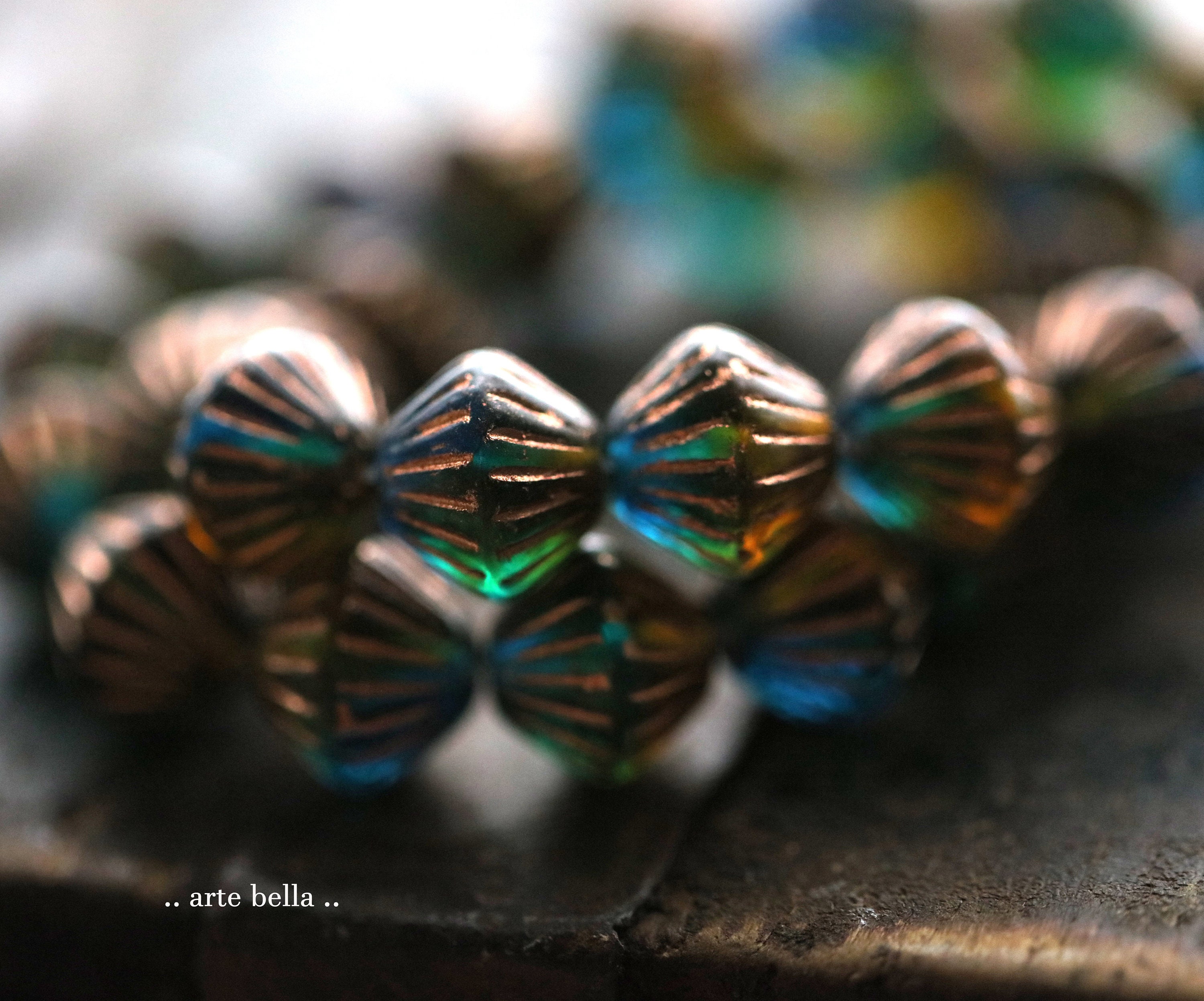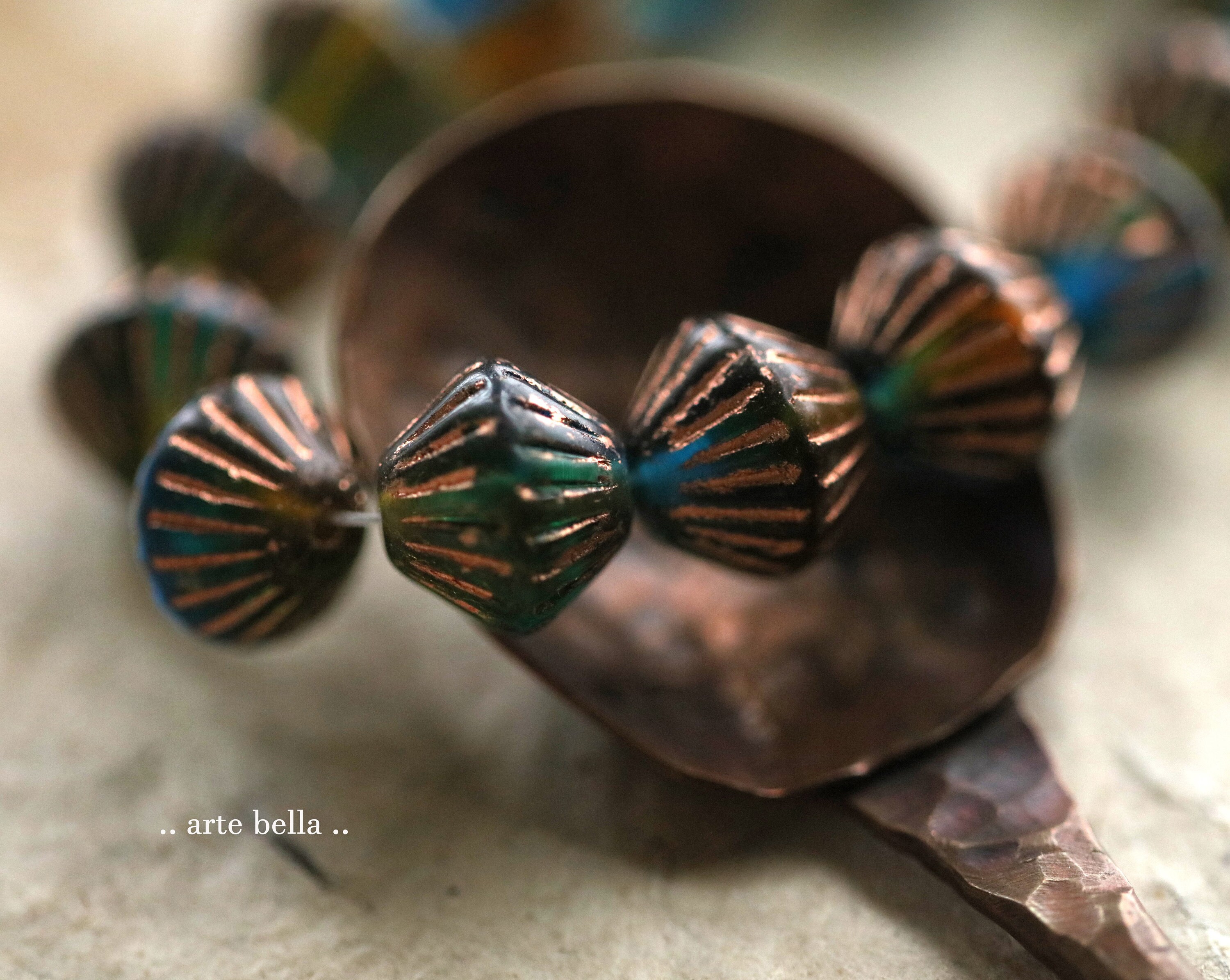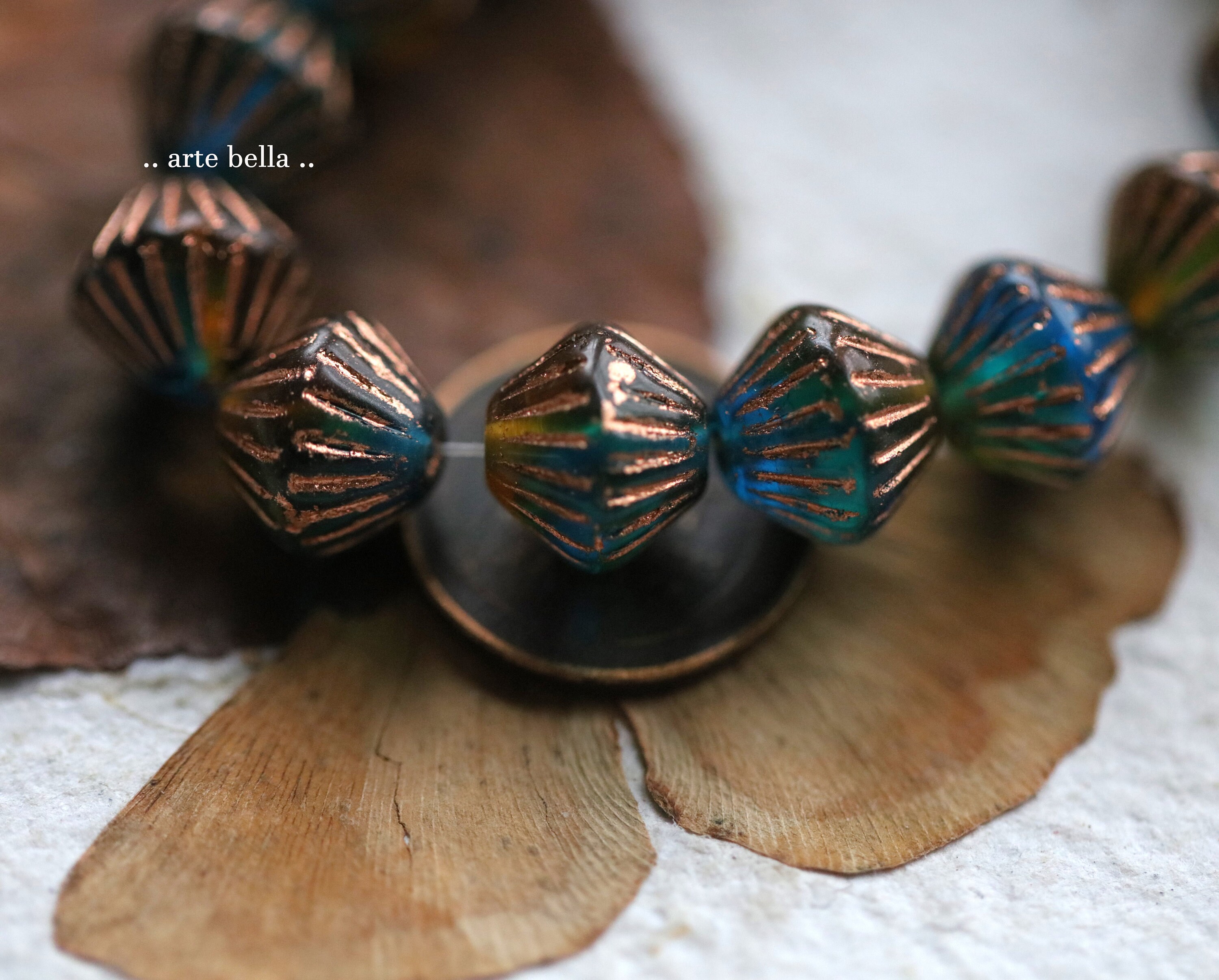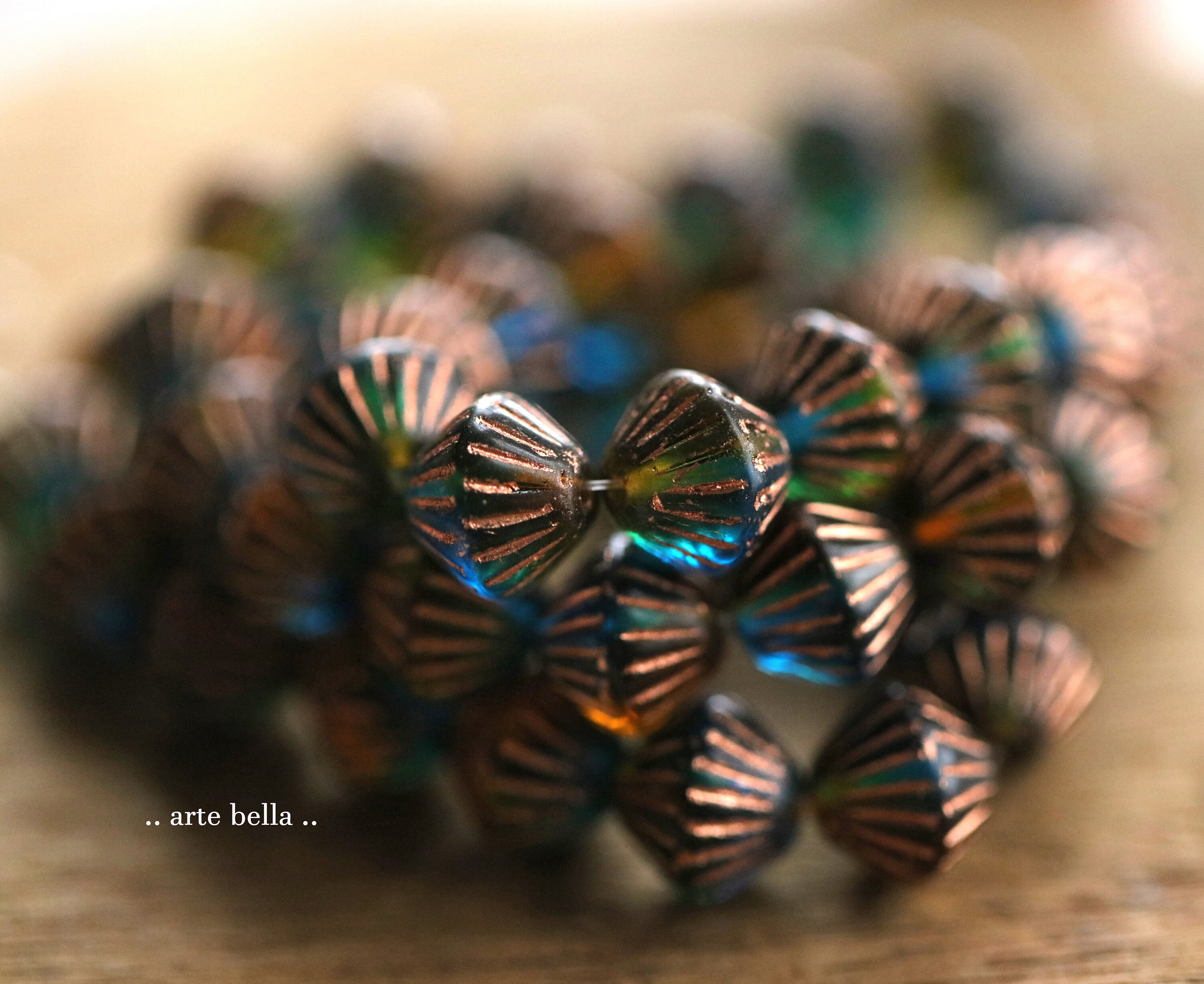 COPPERED CABO TUTUS .. 15 Premium Czech Glass Fluted Bicone Beads 11mm (8808-st) .. jewelry supplies